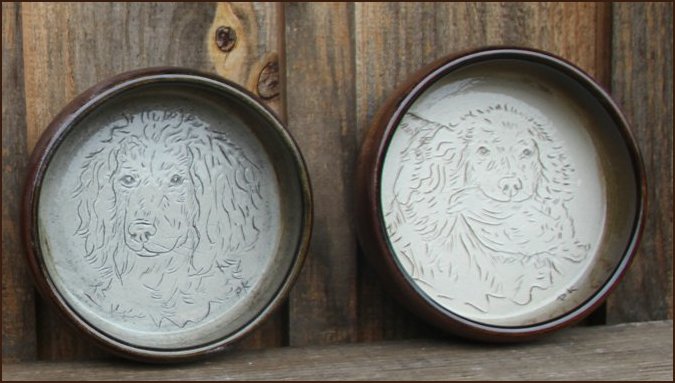 Pet bowls and plates offered as custom made with your dog's image or breed specific: